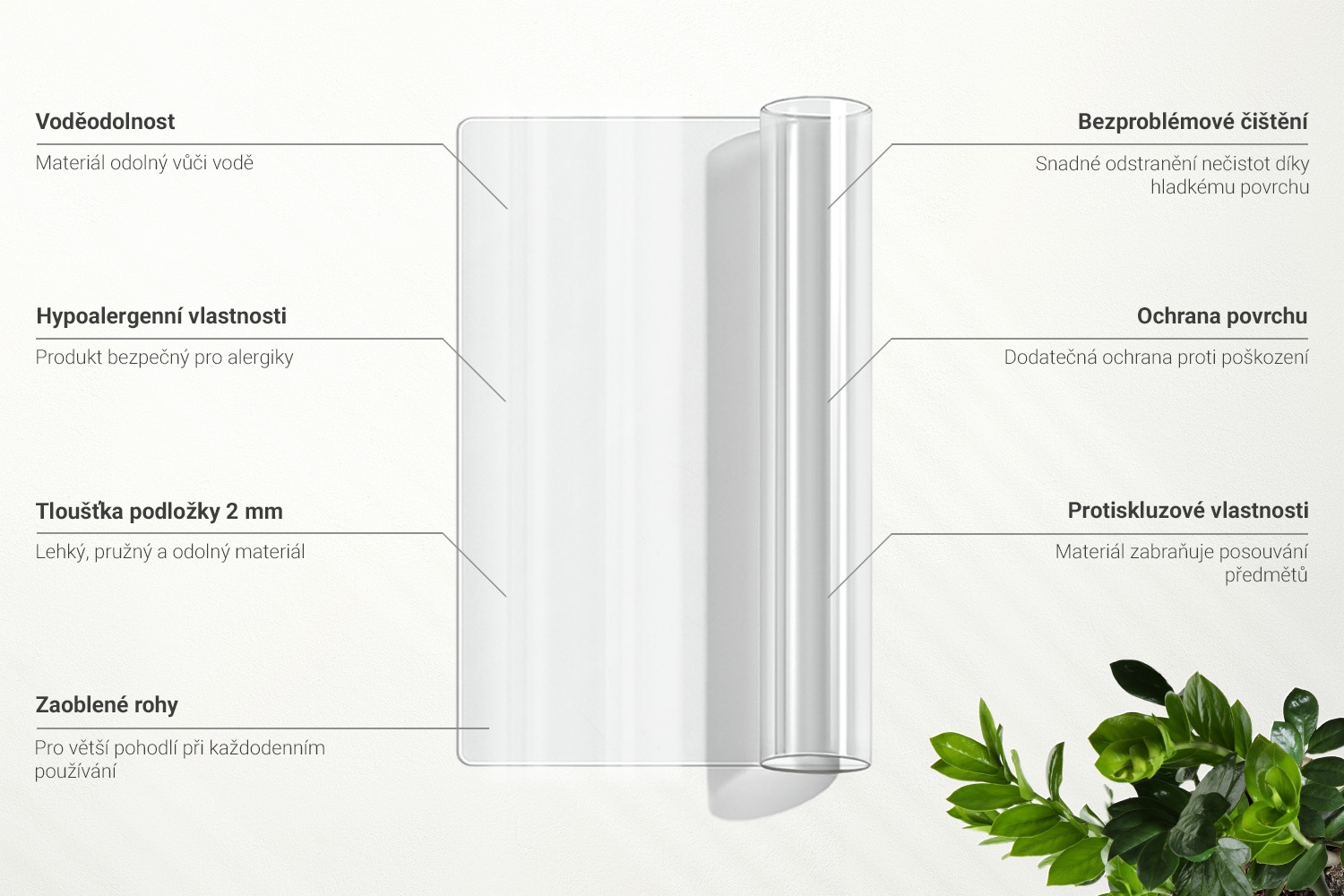 Moderní Podložka na stůl průhledná je praktické řešení, které účinně chrání povrchy před poškrábáním, nečistotami a vlhkostí. Je vyrobena z odolného PVC o tloušťce 2 mm a zachovává transparentnost, takže nenarušuje vzhled interiéru. Díky průhledné struktuře se dokonale hodí do jakéhokoli stylu zařízení, zůstává téměř neviditelná a zároveň je mimořádně funkční.